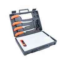 Everything packs away into a robust hard case measuring 385 × 315 × 75 mm, with a total weight of 2.5 kg. The larger case allows room for extra tools like the cutting board, making this a true all-in-one processing solution.