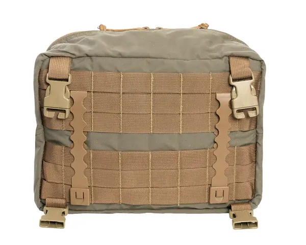 This is a remake of our original Claymore pouch. It is a Molle compatible pouch that has two sections of pals webbing on the back with 8 vertical columns. It has a zippered pocket up front and a mesh pocket on the inside with a key hook. There are 3 slot pockets sewn on the inside of the main compartment. 4 tabs (one on each corner) turn this pouch into a lid on any of our packs that are lid compatible.