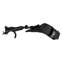 Wrist strap T-Connection: A solid aluminum connection between wrist strap and release, acting as the housing for the Globo-Swivel connector. The T-connector has been designed to fold smoothly like a hinge, allowing the release to be easily tucked into a sleeve when not in use and smoothly redeployed when needed.