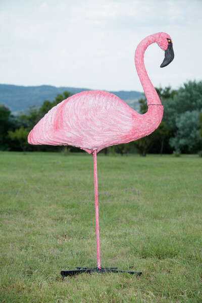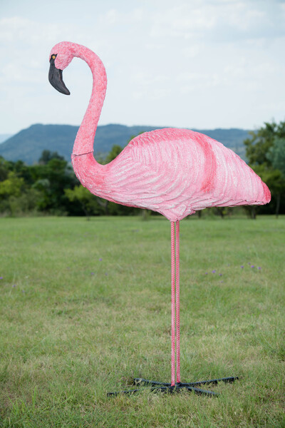 Hand-painted and unique, this beautiful target from Wildcrete can be used for target practice or simply as a stunning lawn ornament. Also available are the Sleeping and Feeding Flamingos; purchase all three to start your own flamboyance.